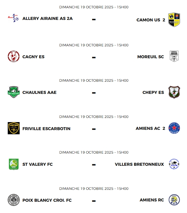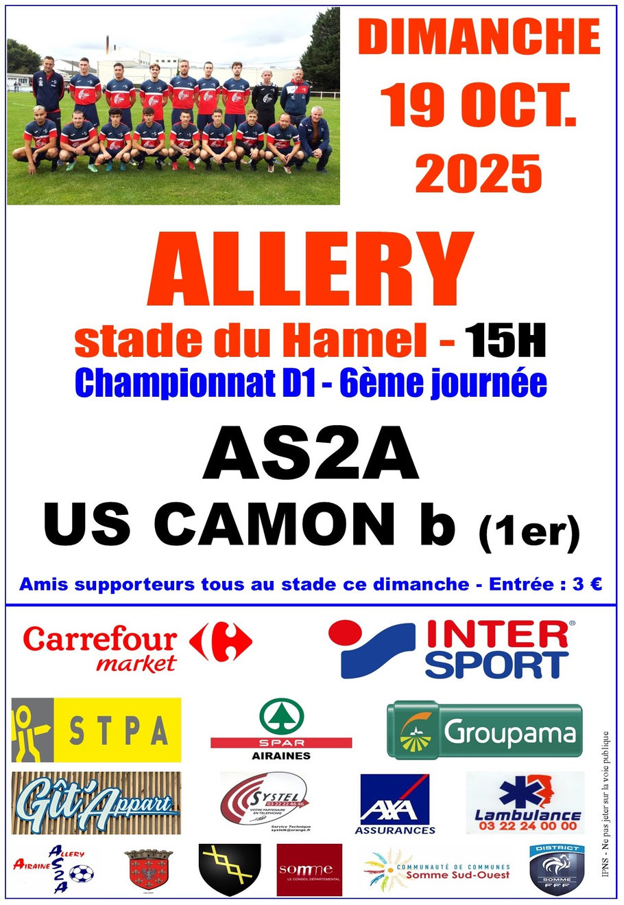 Dimanche 19 octobre 2025 - D1 groupe B - 6ème journée - 15h stade du Hamel d'Allery