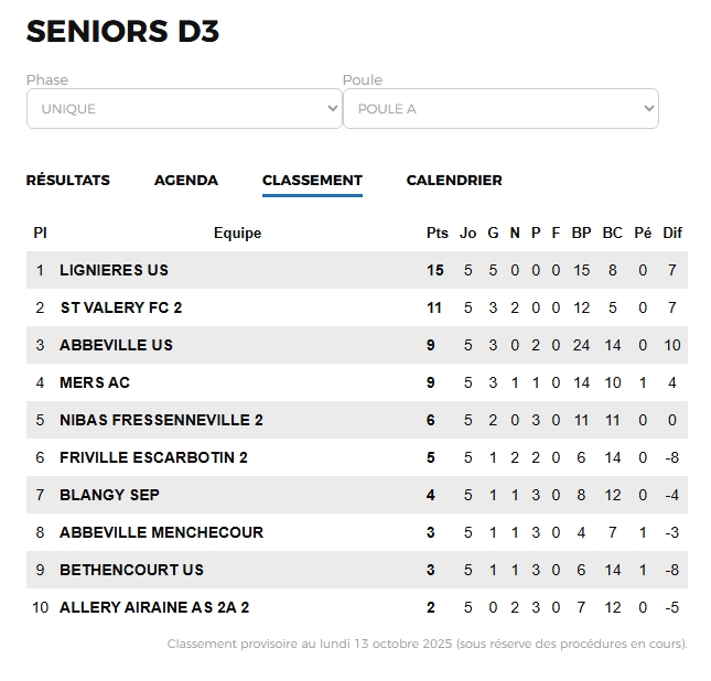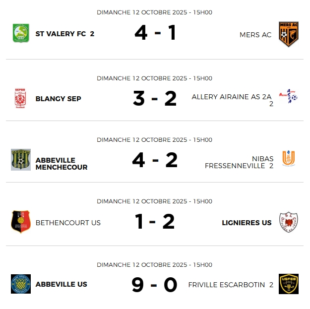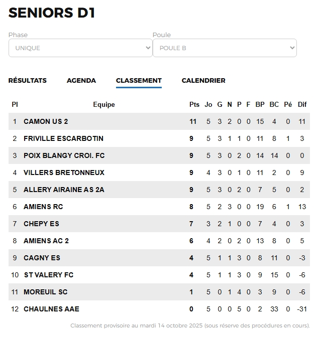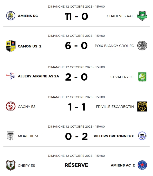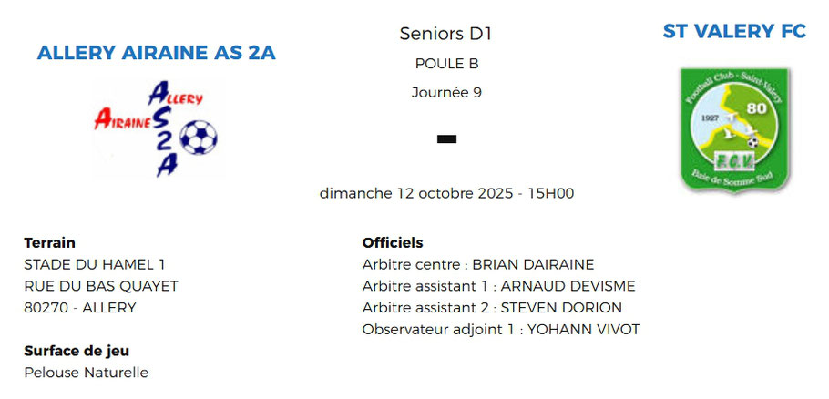 Dimanche 12 octobre 2025 - D1 groupe B - 5ème journée - 15h stade du Hamel d'Allery