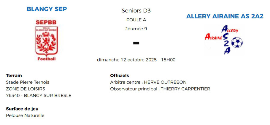 Championnat D3 - 5ème journée groupe A - 15h stade Pierre Ternois de Blangy sur Bresle